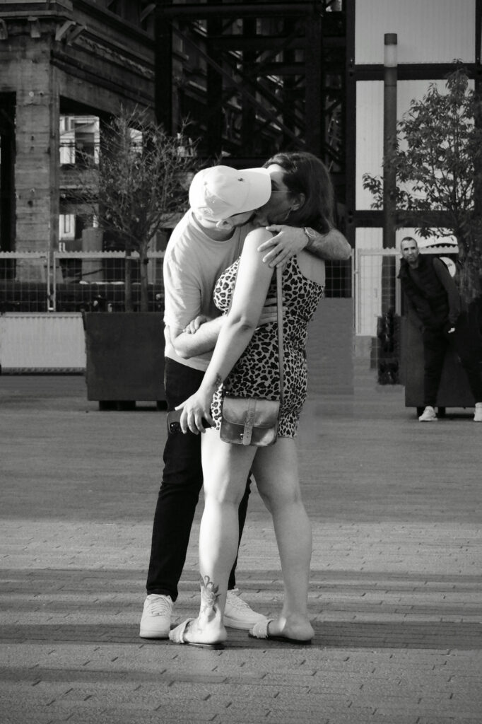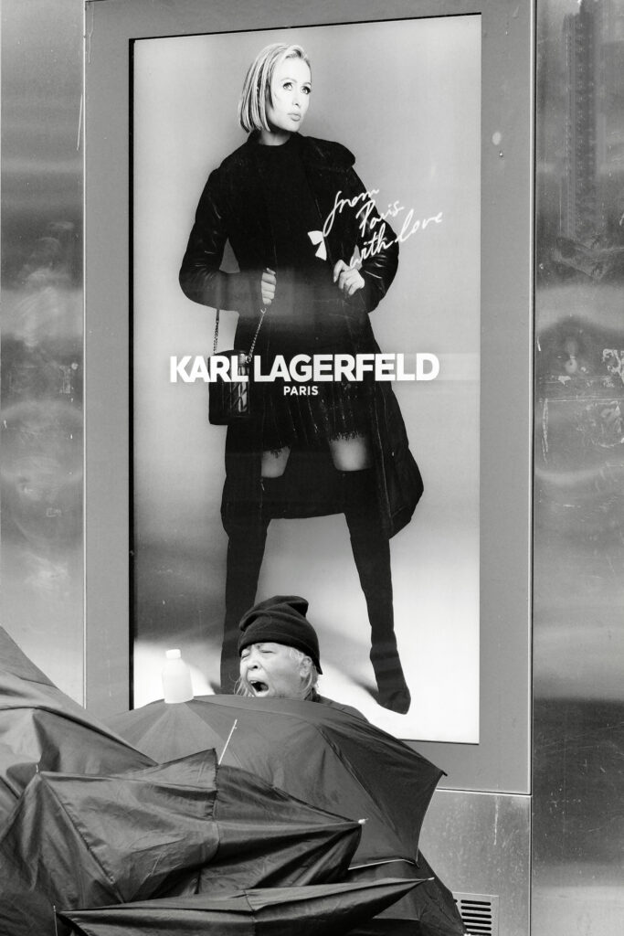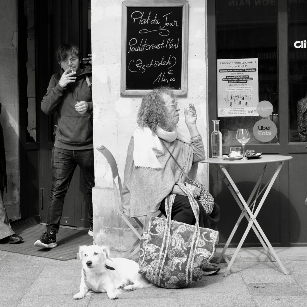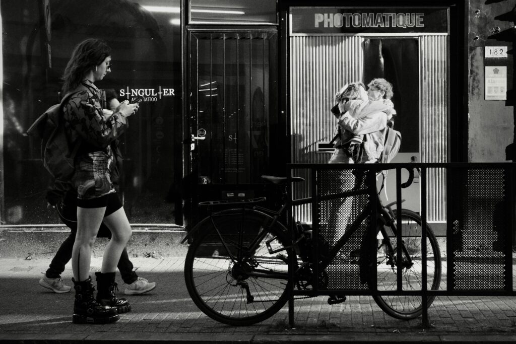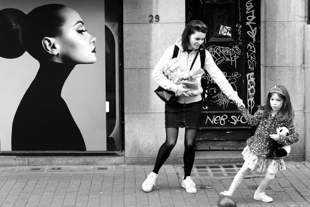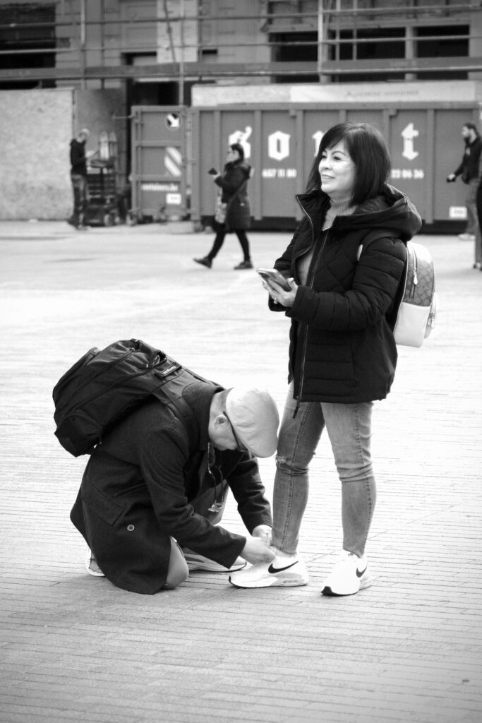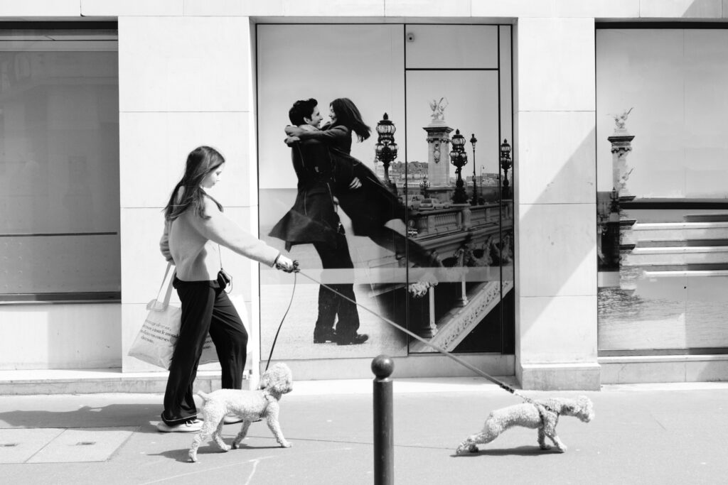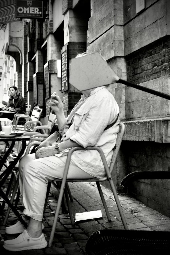 Ma pratique de la photo s’est ensuite naturellement prolongée dans la rue, où l’imprévu dicte désormais directement le sens né de l’addition d’un sujet et de son arrière-plan. Je cherche à y repérer toute association intéressante entre les personnes qui croisent mon objectif – personnes qui deviennent instantanément des personnages – et un élément du décor urbain qui les entoure. Ainsi naissent autant d’histoires visuelles interpellantes ou simplement émouvantes. Et si j’y glisse souvent une touche d’humour, de malice, voire une pointe de cynisme, c’est toujours avec bienveillance. J’aime les gens et le contact.