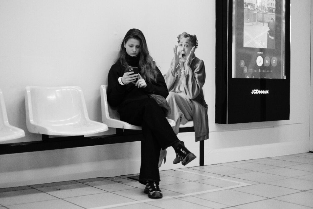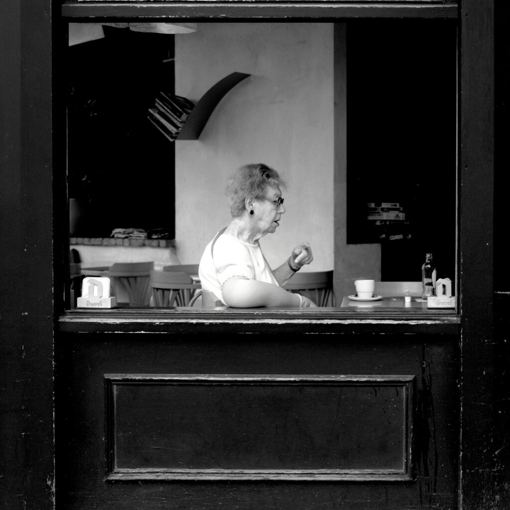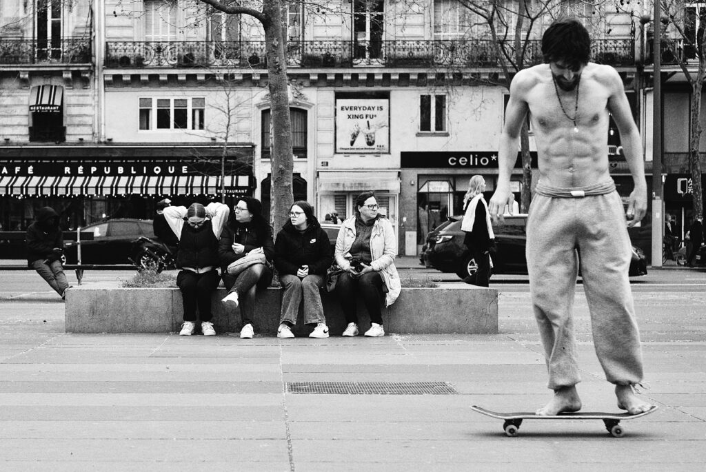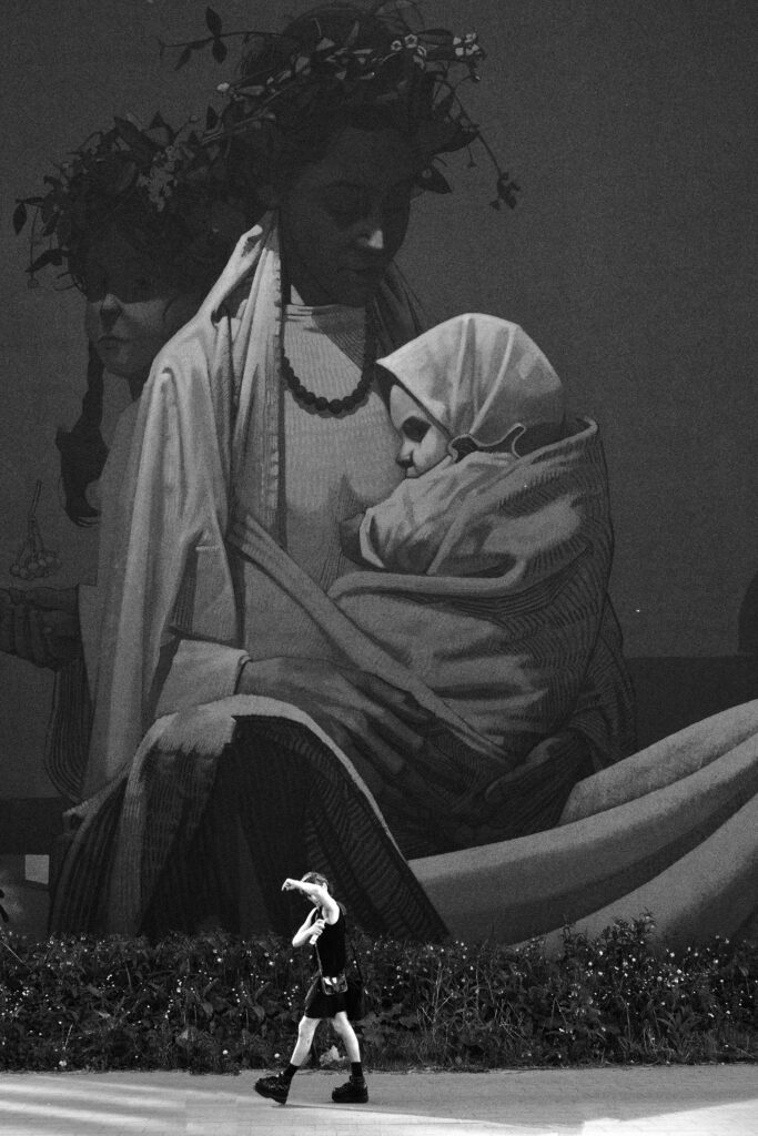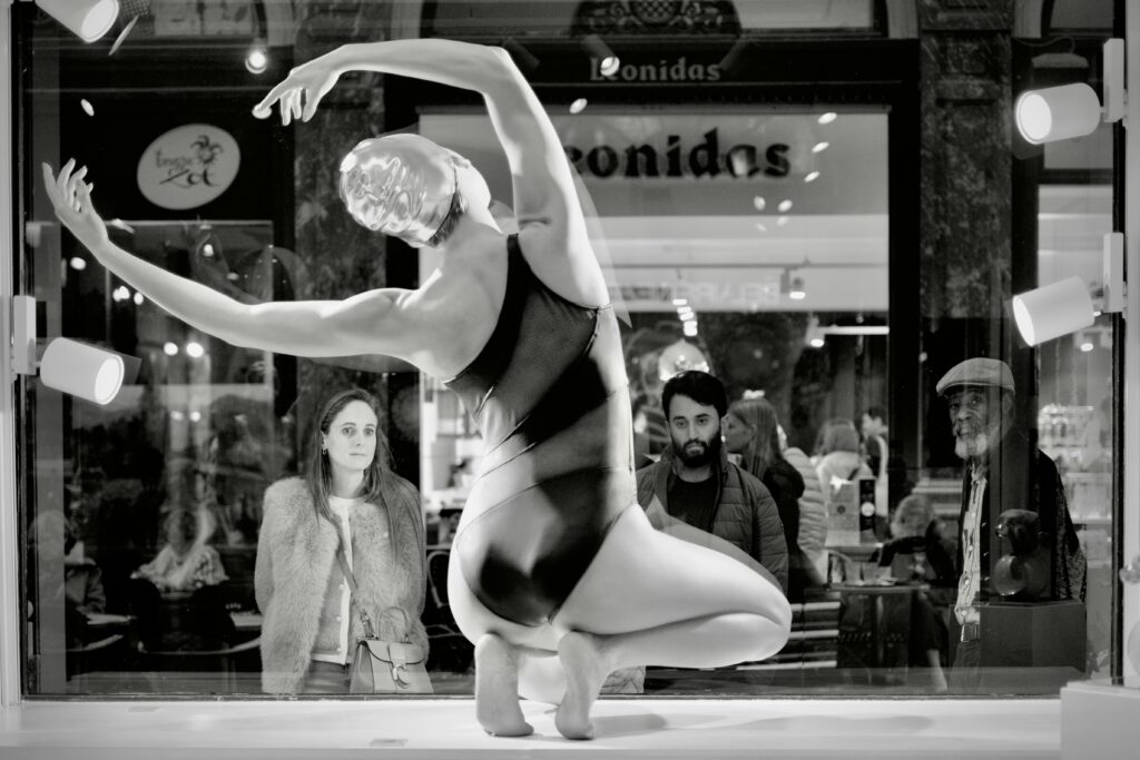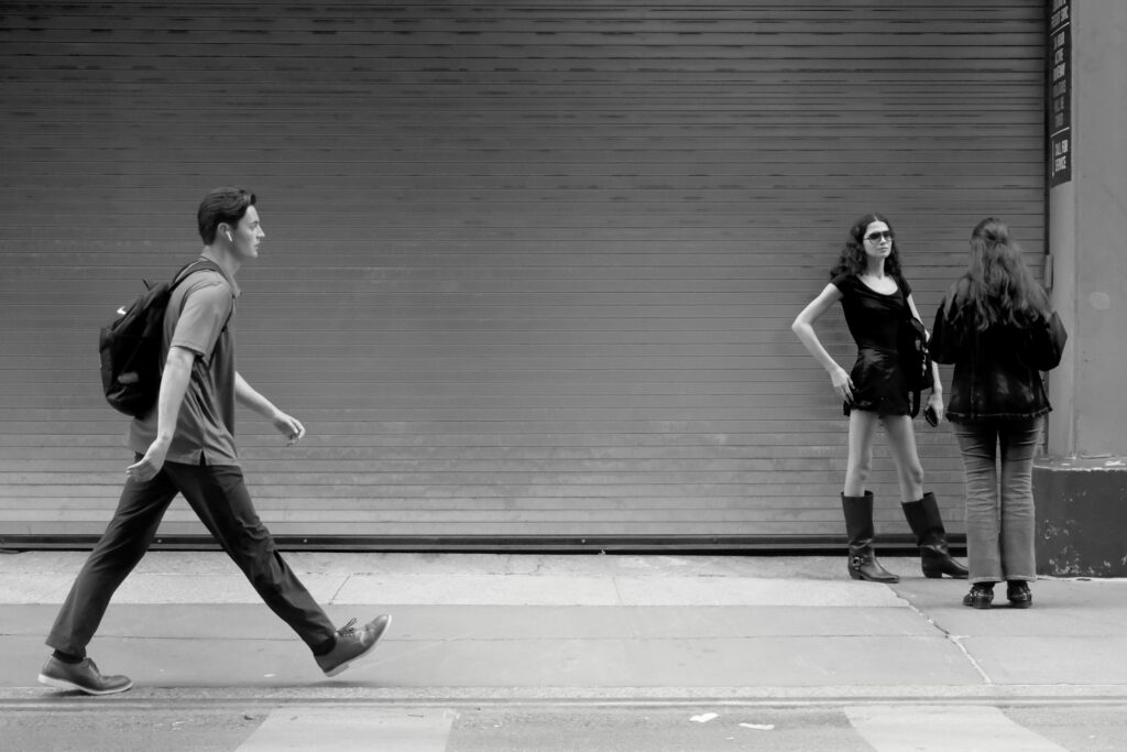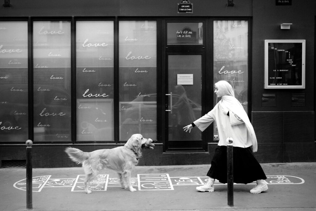 Ma pratique de la photo s’est ensuite naturellement prolongée dans la rue, où l’imprévu dicte désormais directement le sens né de l’addition d’un sujet et de son arrière-plan. Je cherche à y repérer toute association intéressante entre les personnes qui croisent mon objectif – personnes qui deviennent instantanément des personnages – et un élément du décor urbain qui les entoure. Ainsi naissent autant d’histoires visuelles interpellantes ou simplement émouvantes. Et si j’y glisse souvent une touche d’humour, de malice, voire une pointe de cynisme, c’est toujours avec bienveillance. J’aime les gens et le contact.