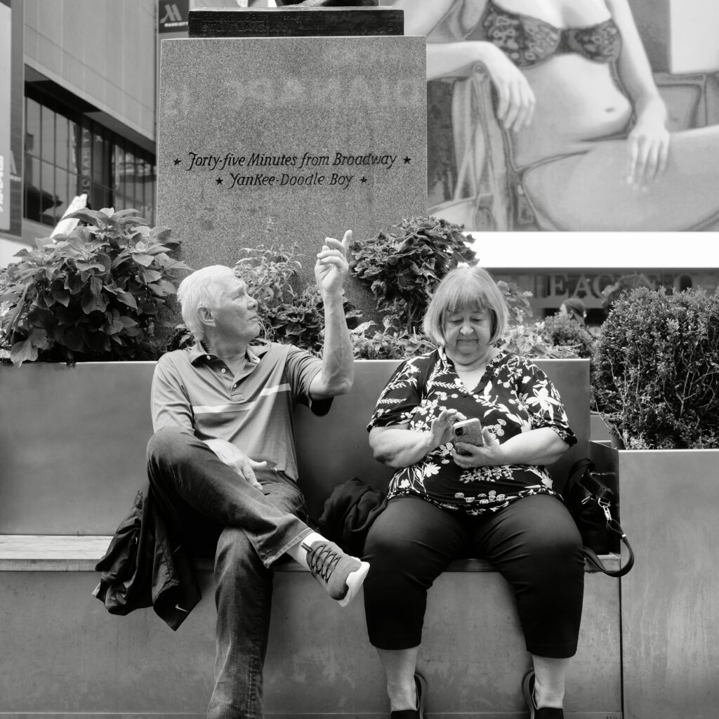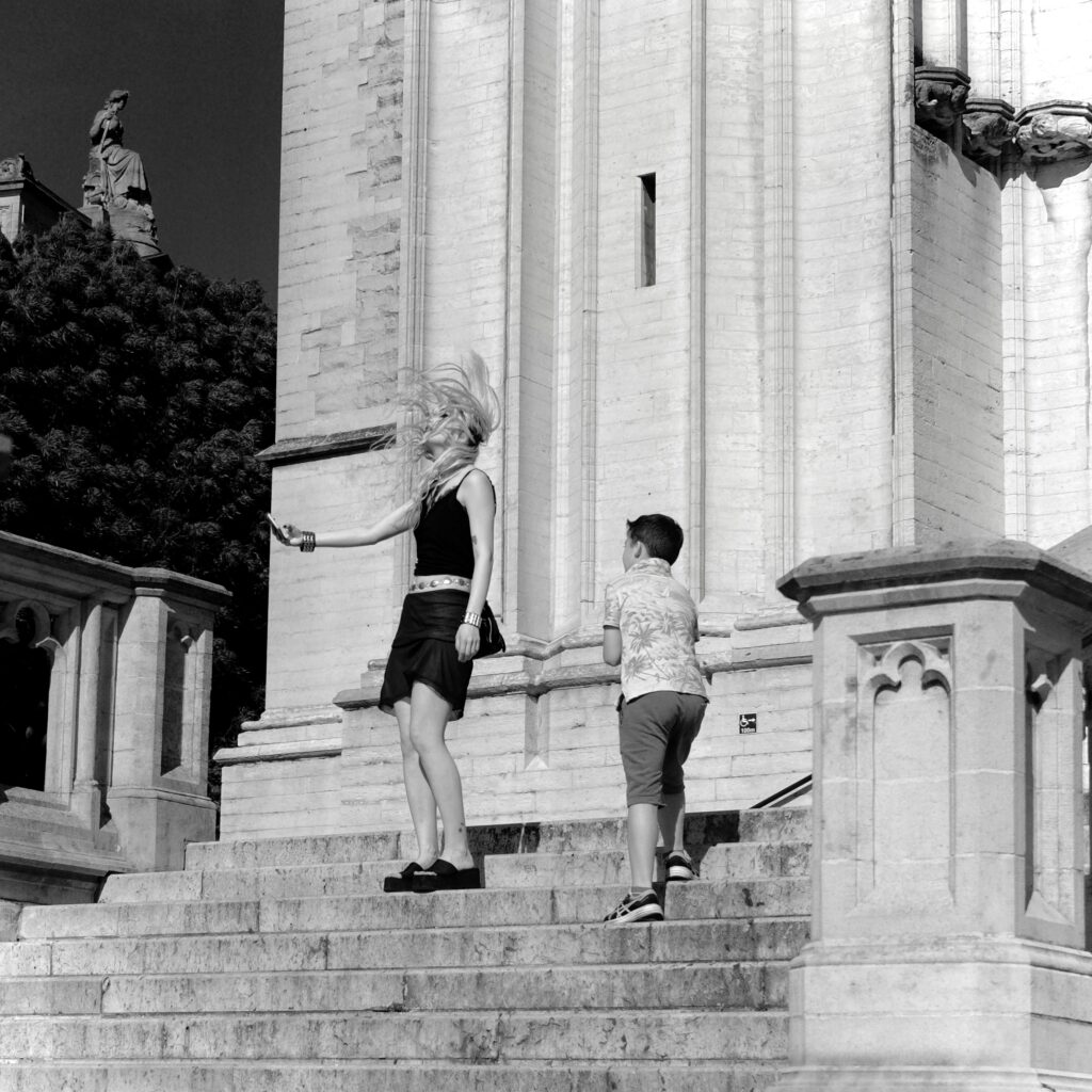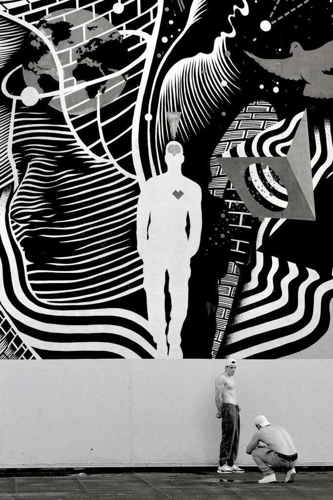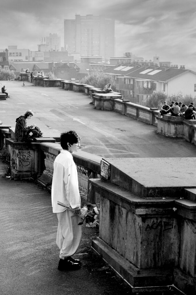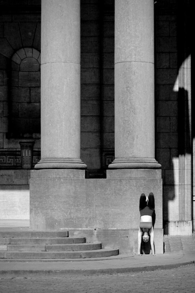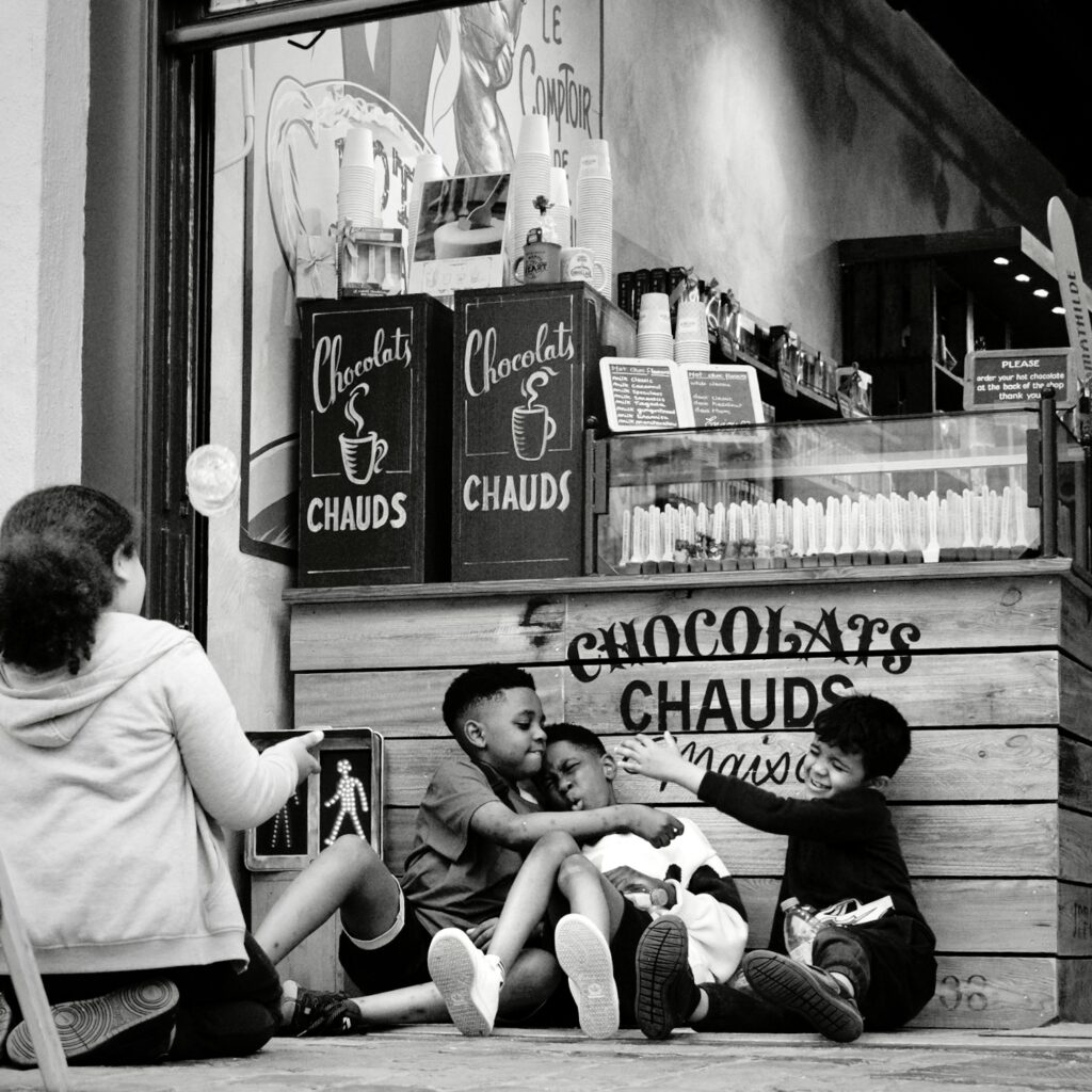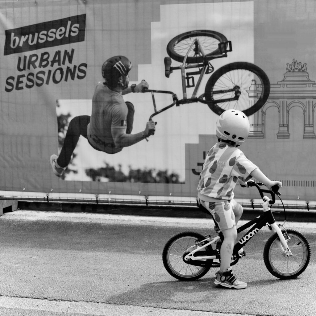Ma pratique de la photo s’est ensuite naturellement prolongée dans la rue, où l’imprévu dicte désormais directement le sens né de l’addition d’un sujet et de son arrière-plan. Je cherche à y repérer toute association intéressante entre les personnes qui croisent mon objectif – personnes qui deviennent instantanément des personnages – et un élément du décor urbain qui les entoure. Ainsi naissent autant d’histoires visuelles interpellantes ou simplement émouvantes. Et si j’y glisse souvent une touche d’humour, de malice, voire une pointe de cynisme, c’est toujours avec bienveillance. J’aime les gens et le contact.