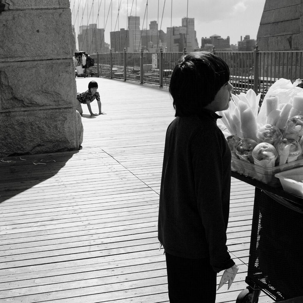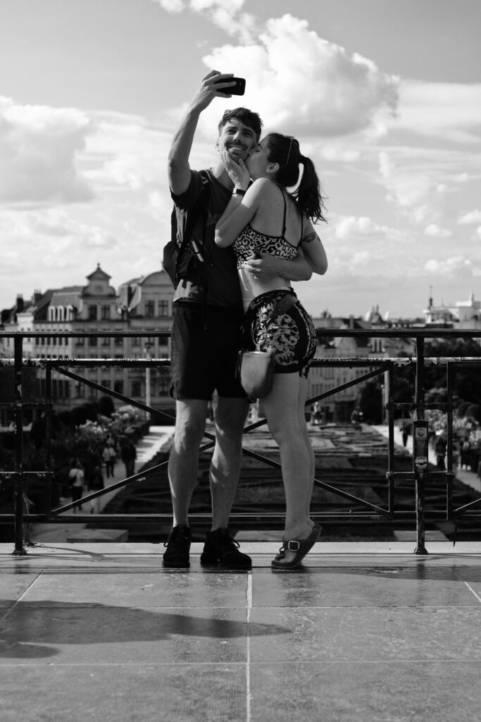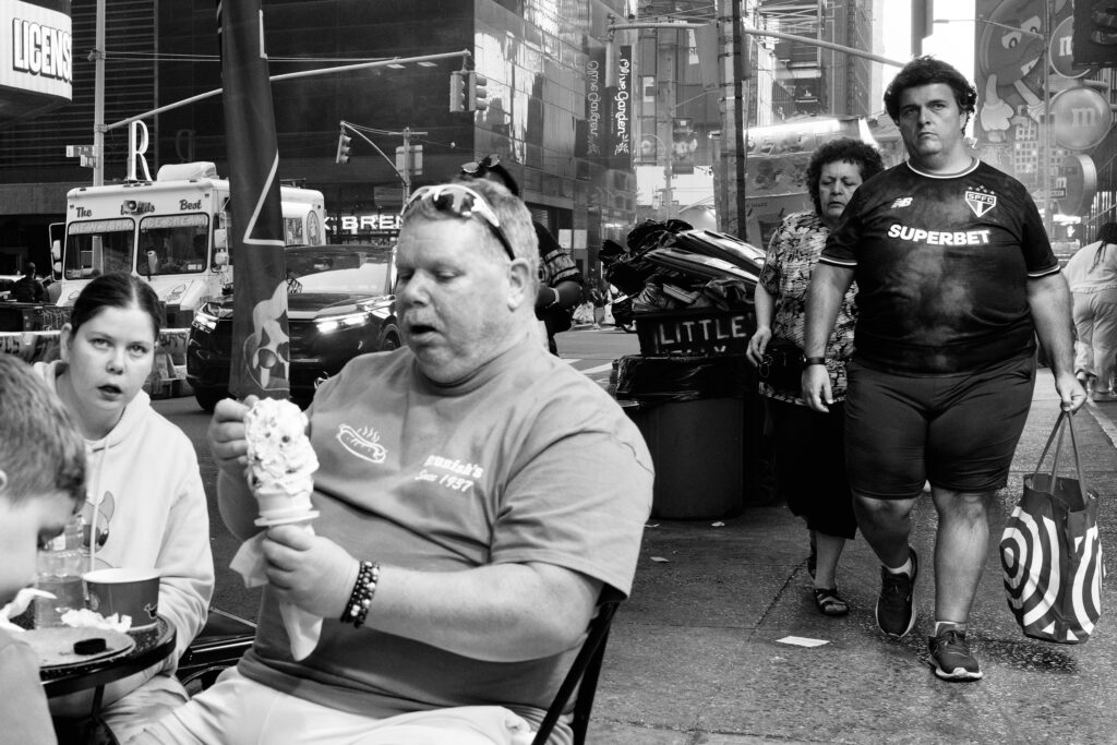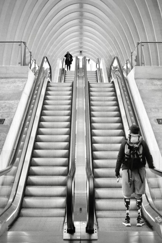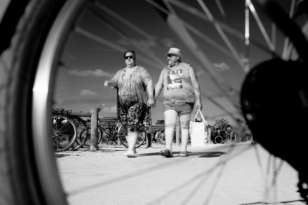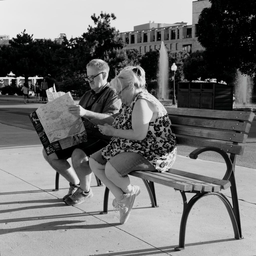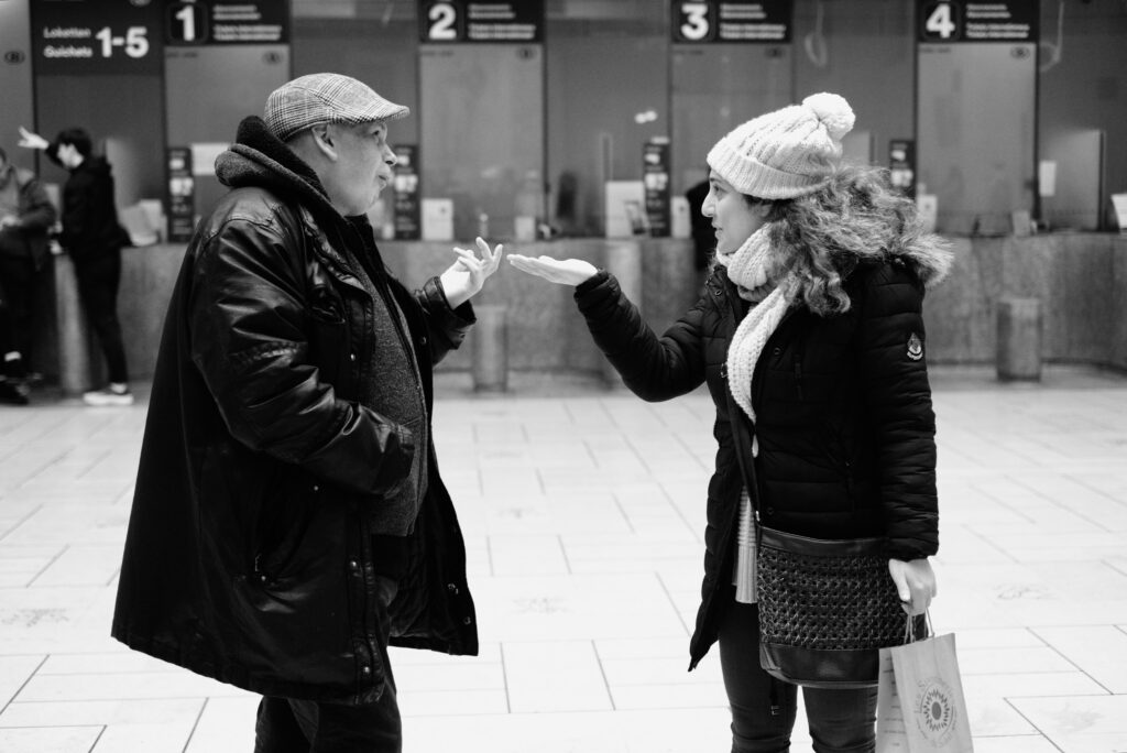 Ma pratique de la photo s’est ensuite naturellement prolongée dans la rue, où l’imprévu dicte désormais directement le sens né de l’addition d’un sujet et de son arrière-plan. Je cherche à y repérer toute association intéressante entre les personnes qui croisent mon objectif – personnes qui deviennent instantanément des personnages – et un élément du décor urbain qui les entoure. Ainsi naissent autant d’histoires visuelles interpellantes ou simplement émouvantes. Et si j’y glisse souvent une touche d’humour, de malice, voire une pointe de cynisme, c’est toujours avec bienveillance. J’aime les gens et le contact.