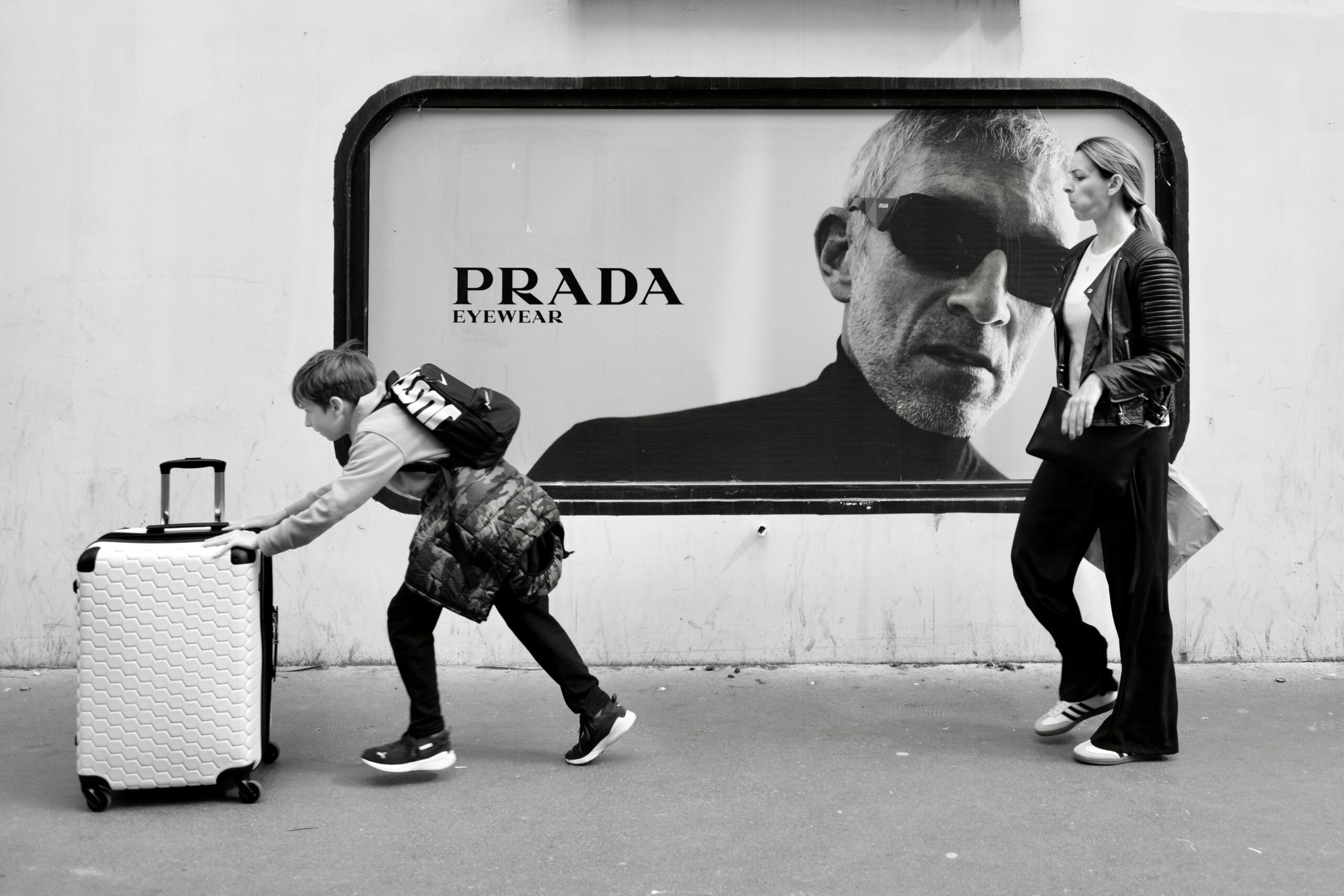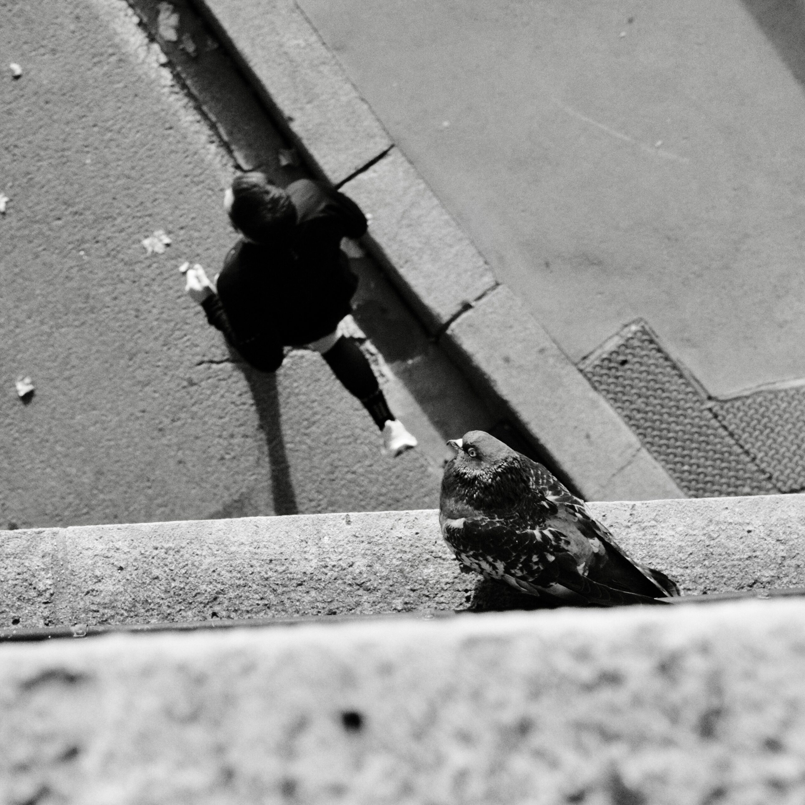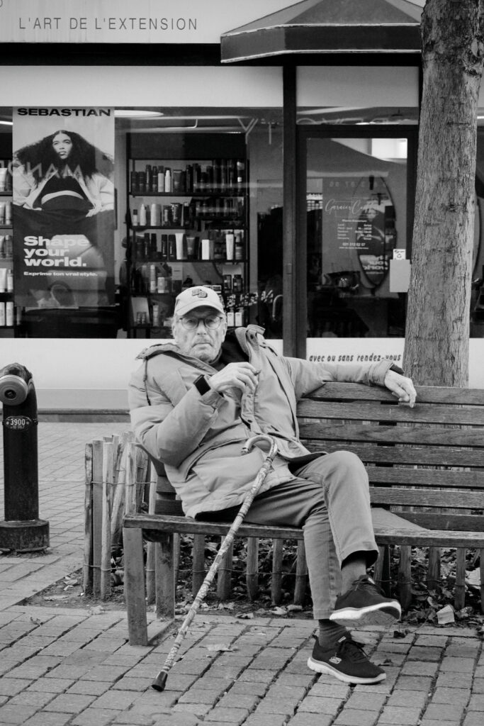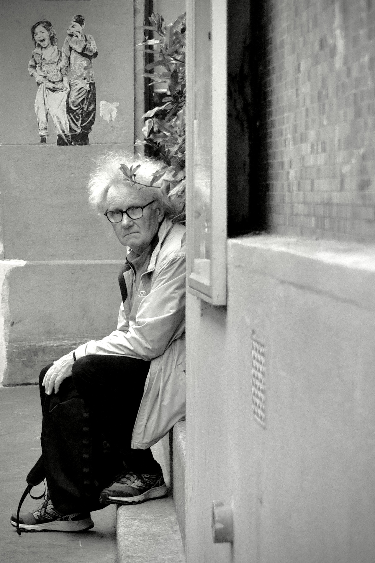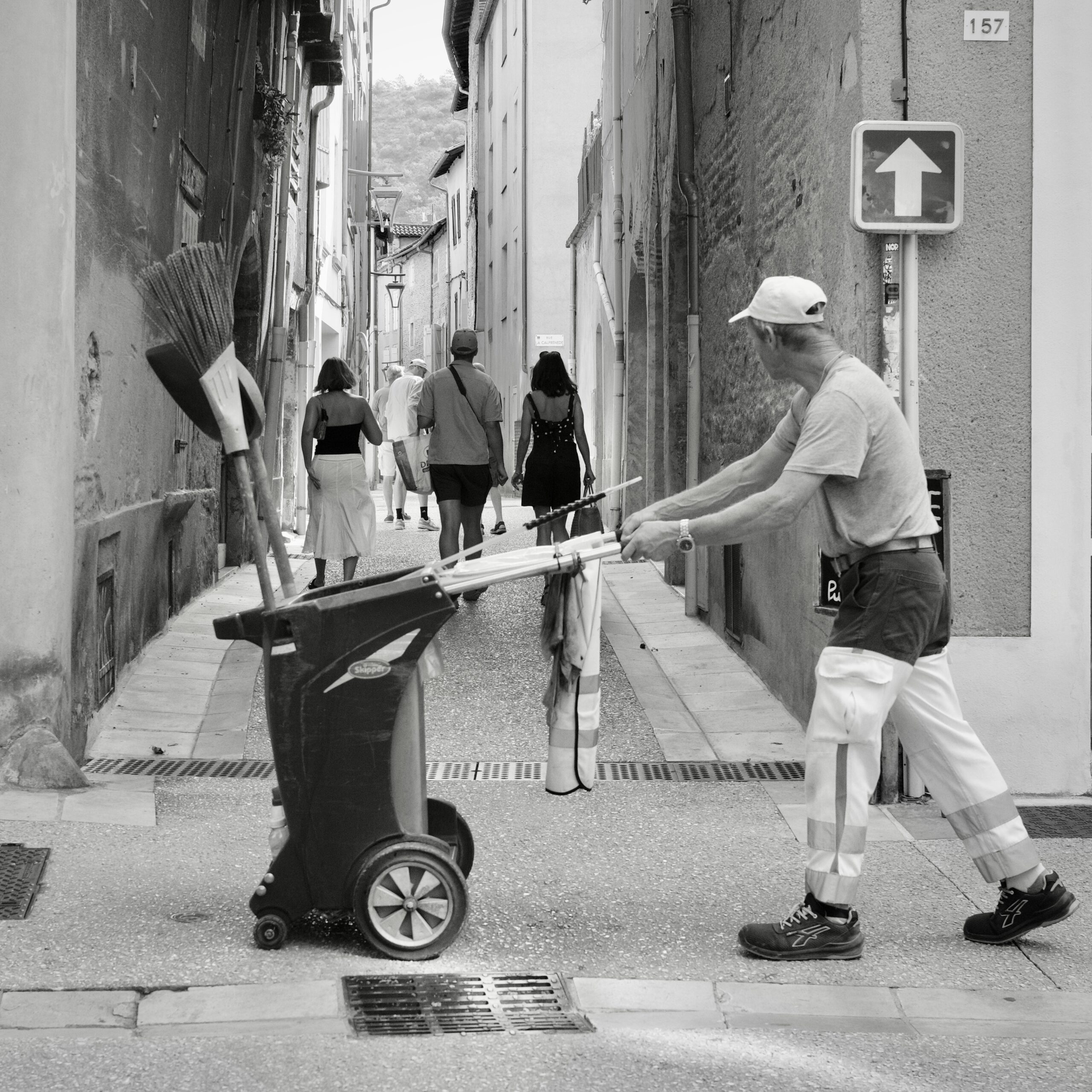 Ma pratique de la photo s’est ensuite naturellement prolongée dans la rue, où l’imprévu dicte désormais directement le sens né de l’addition d’un sujet et de son arrière-plan. Je cherche à y repérer toute association intéressante entre les personnes qui croisent mon objectif – personnes qui deviennent instantanément des personnages – et un élément du décor urbain qui les entoure. Ainsi naissent autant d’histoires visuelles interpellantes ou simplement émouvantes. Et si j’y glisse souvent une touche d’humour, de malice, voire une pointe de cynisme, c’est toujours avec bienveillance. J’aime les gens et le contact.
