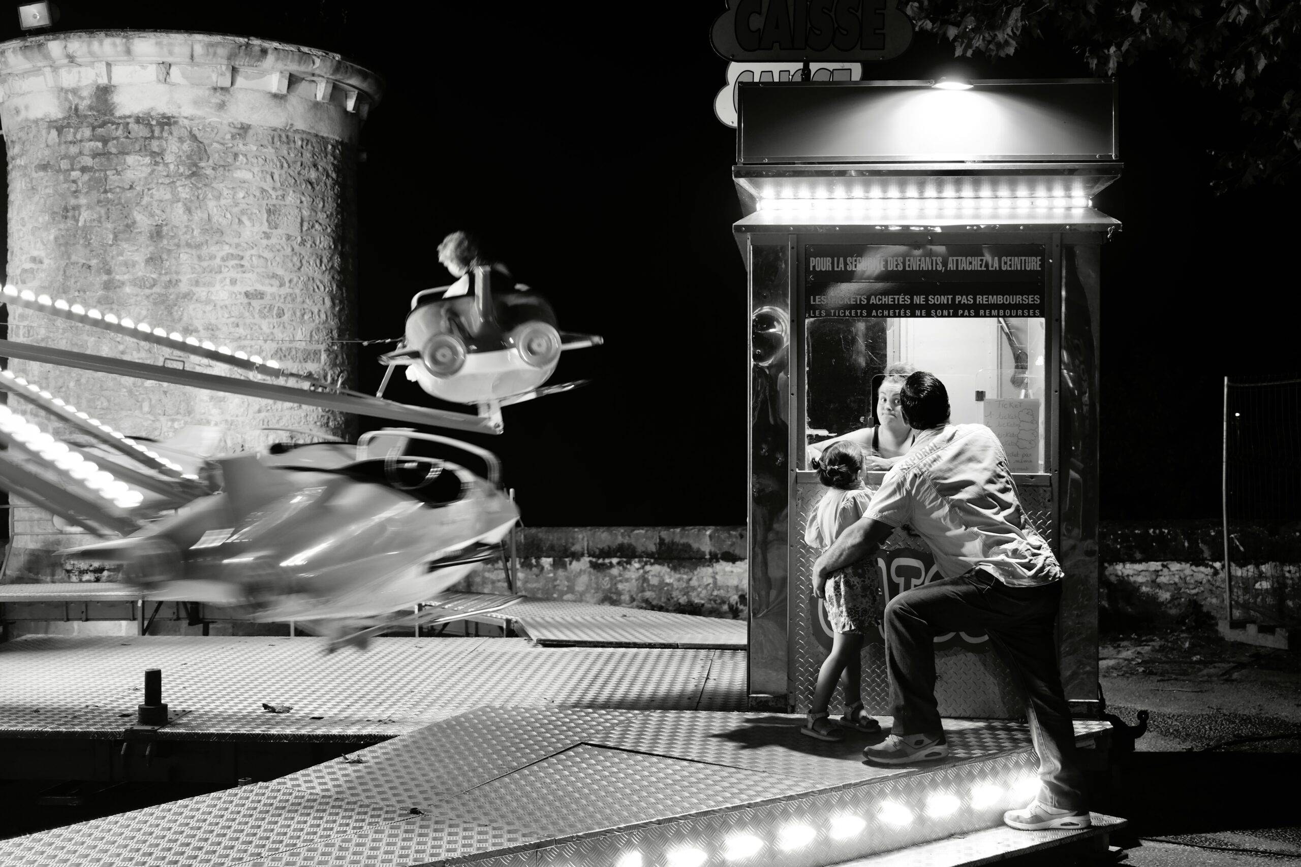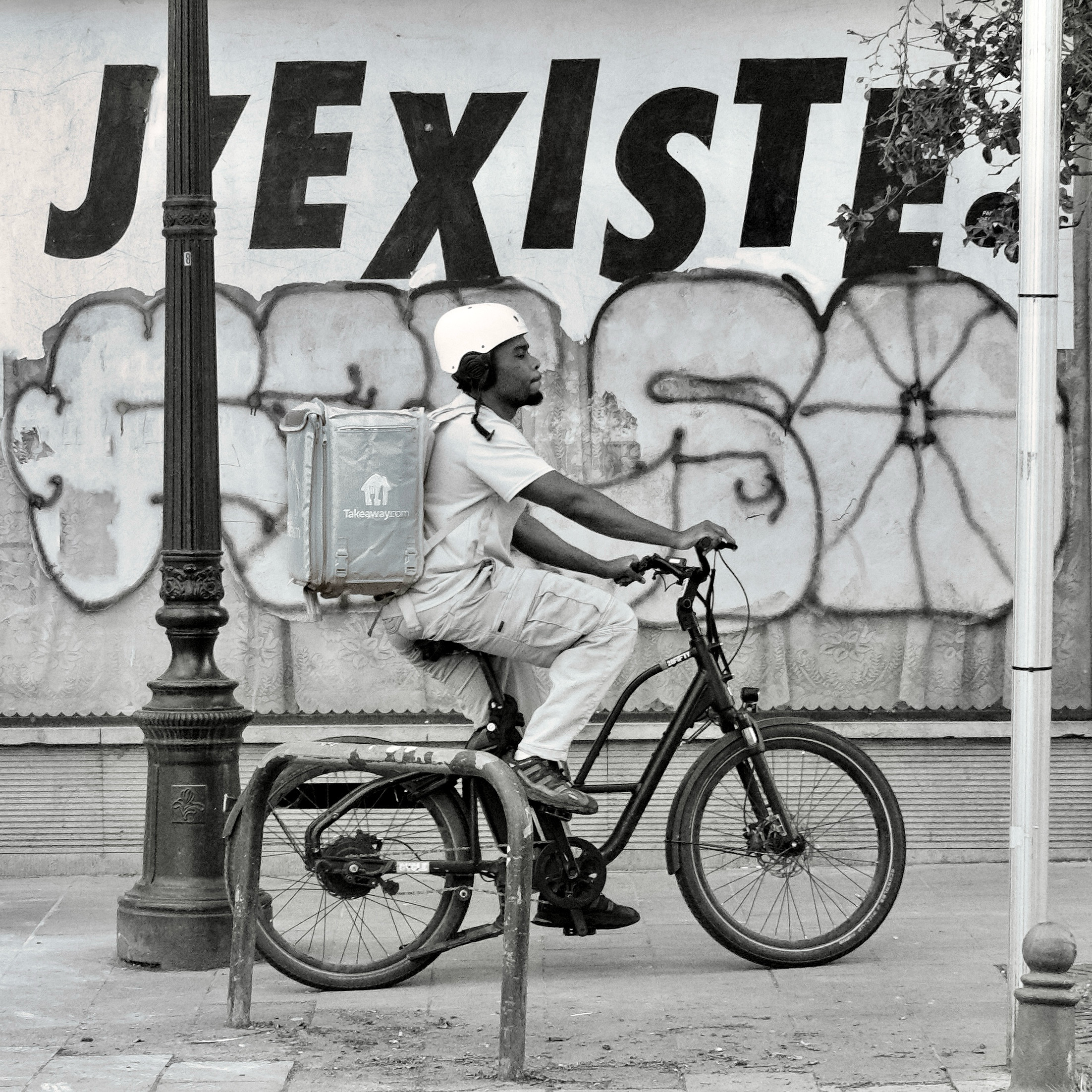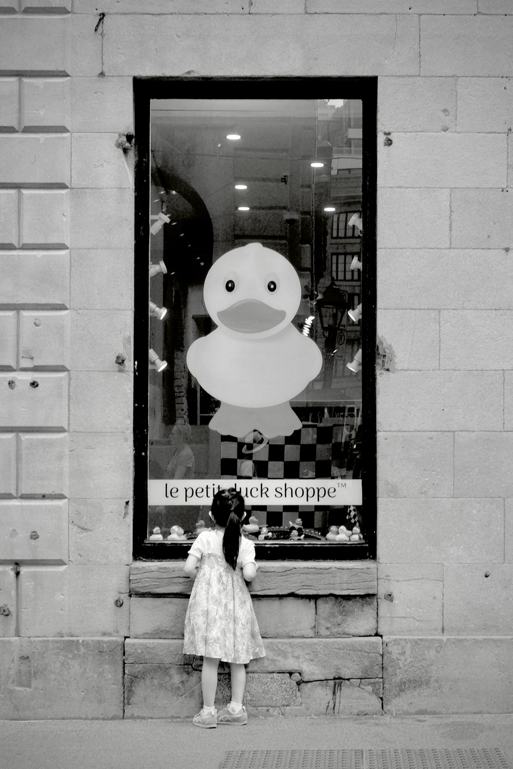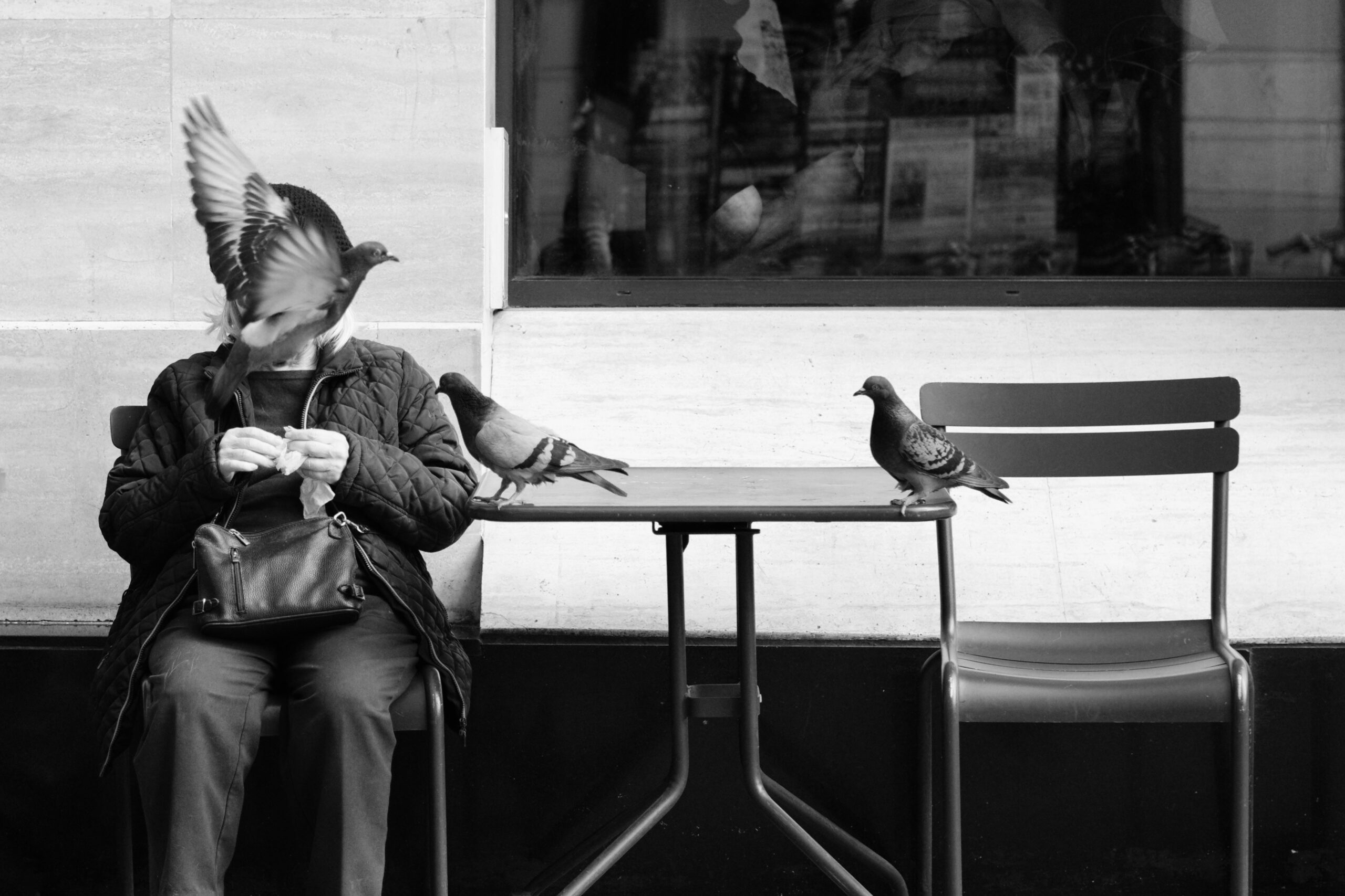 Ma pratique de la photo s’est ensuite naturellement prolongée dans la rue, où l’imprévu dicte désormais directement le sens né de l’addition d’un sujet et de son arrière-plan. Je cherche à y repérer toute association intéressante entre les personnes qui croisent mon objectif – personnes qui deviennent instantanément des personnages – et un élément du décor urbain qui les entoure. Ainsi naissent autant d’histoires visuelles interpellantes ou simplement émouvantes. Et si j’y glisse souvent une touche d’humour, de malice, voire une pointe de cynisme, c’est toujours avec bienveillance. J’aime les gens et le contact.