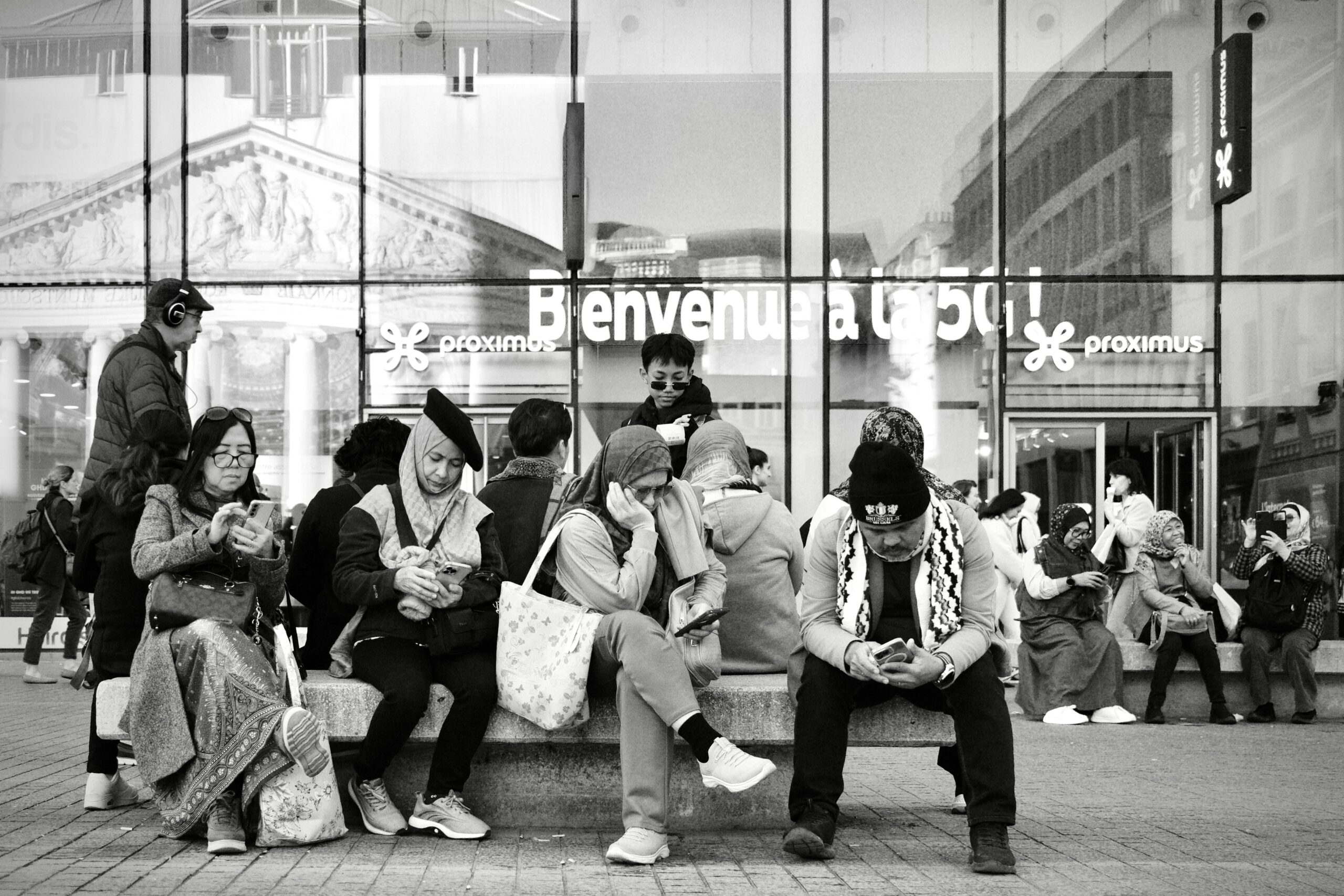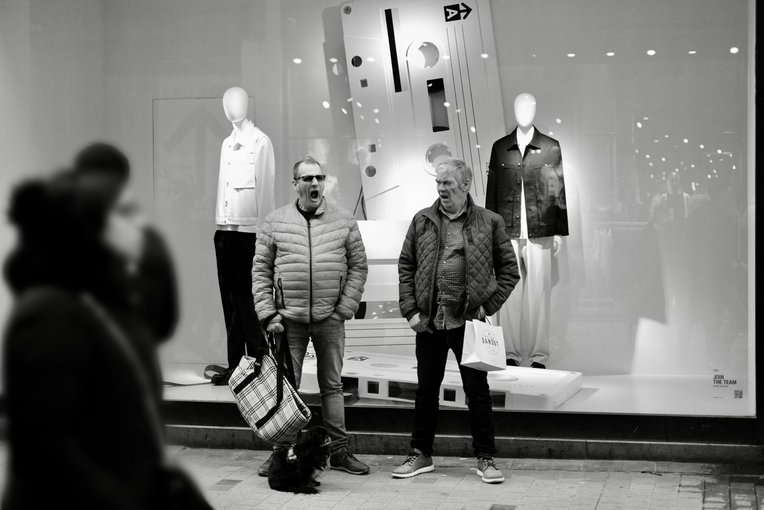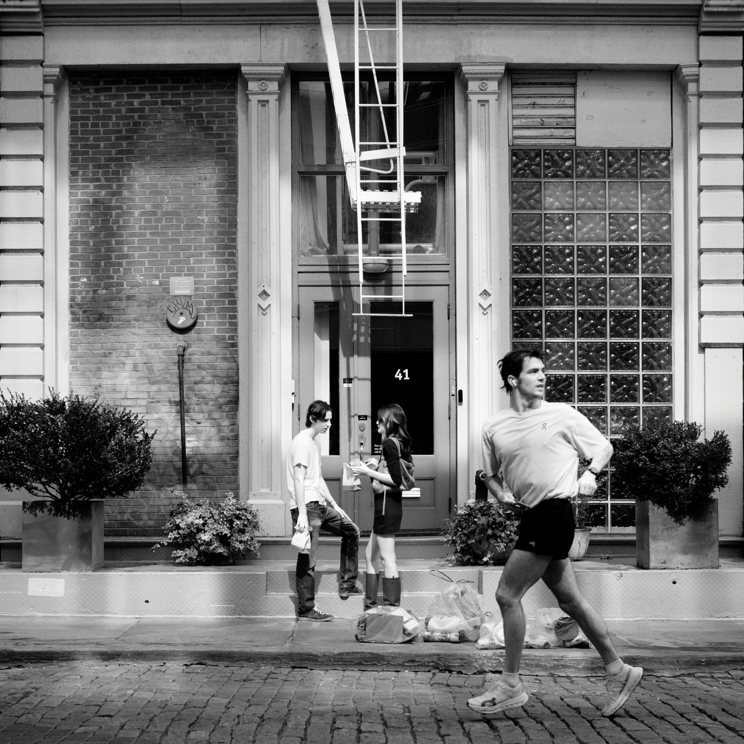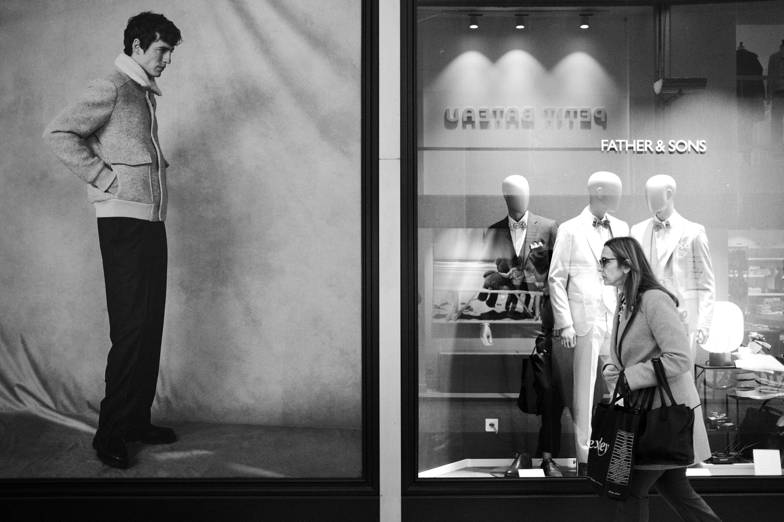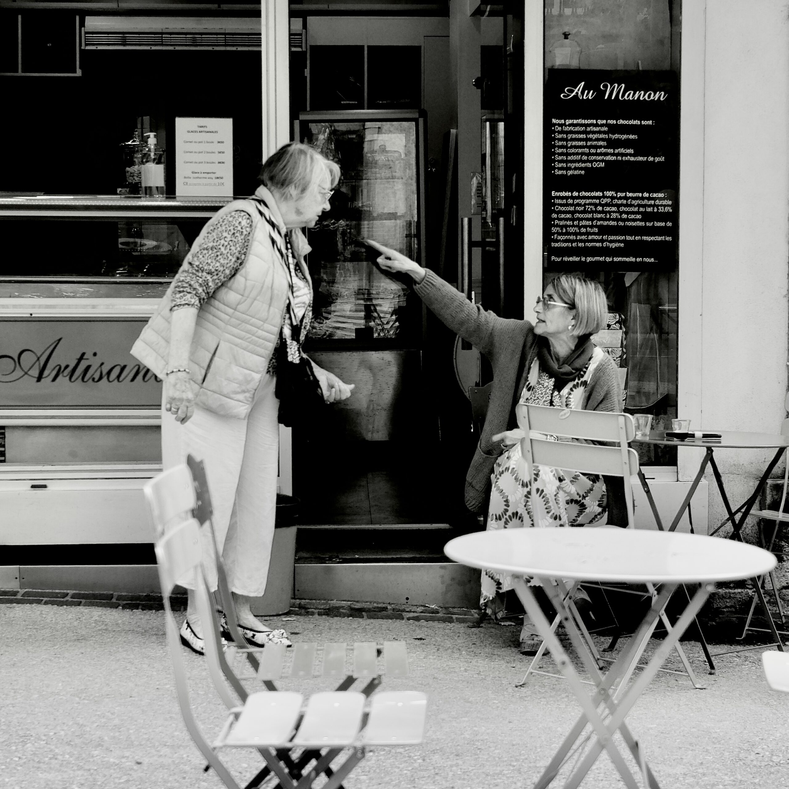 Ma pratique de la photo s’est ensuite naturellement prolongée dans la rue, où l’imprévu dicte désormais directement le sens né de l’addition d’un sujet et de son arrière-plan. Je cherche à y repérer toute association intéressante entre les personnes qui croisent mon objectif – personnes qui deviennent instantanément des personnages – et un élément du décor urbain qui les entoure. Ainsi naissent autant d’histoires visuelles interpellantes ou simplement émouvantes. Et si j’y glisse souvent une touche d’humour, de malice, voire une pointe de cynisme, c’est toujours avec bienveillance. J’aime les gens et le contact.