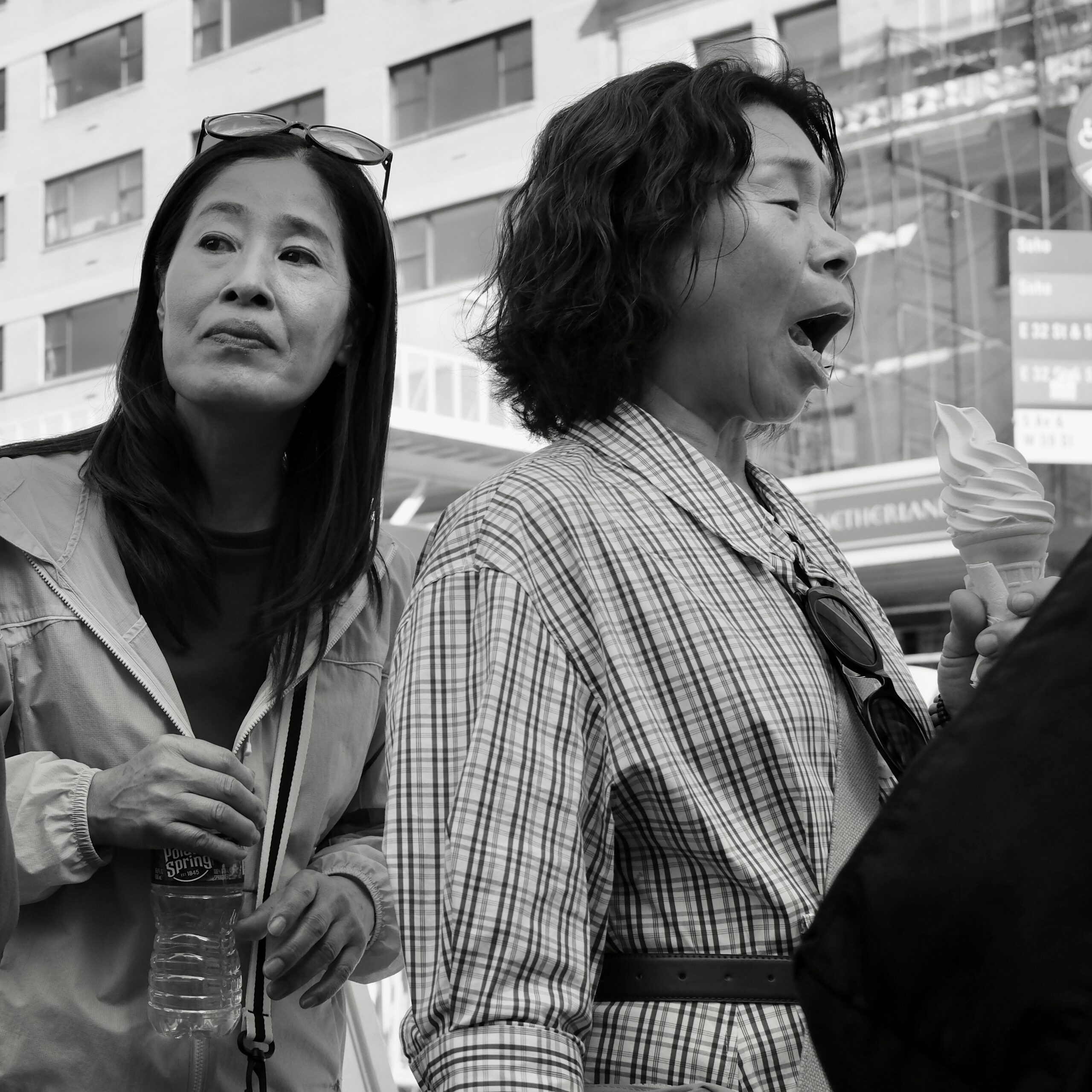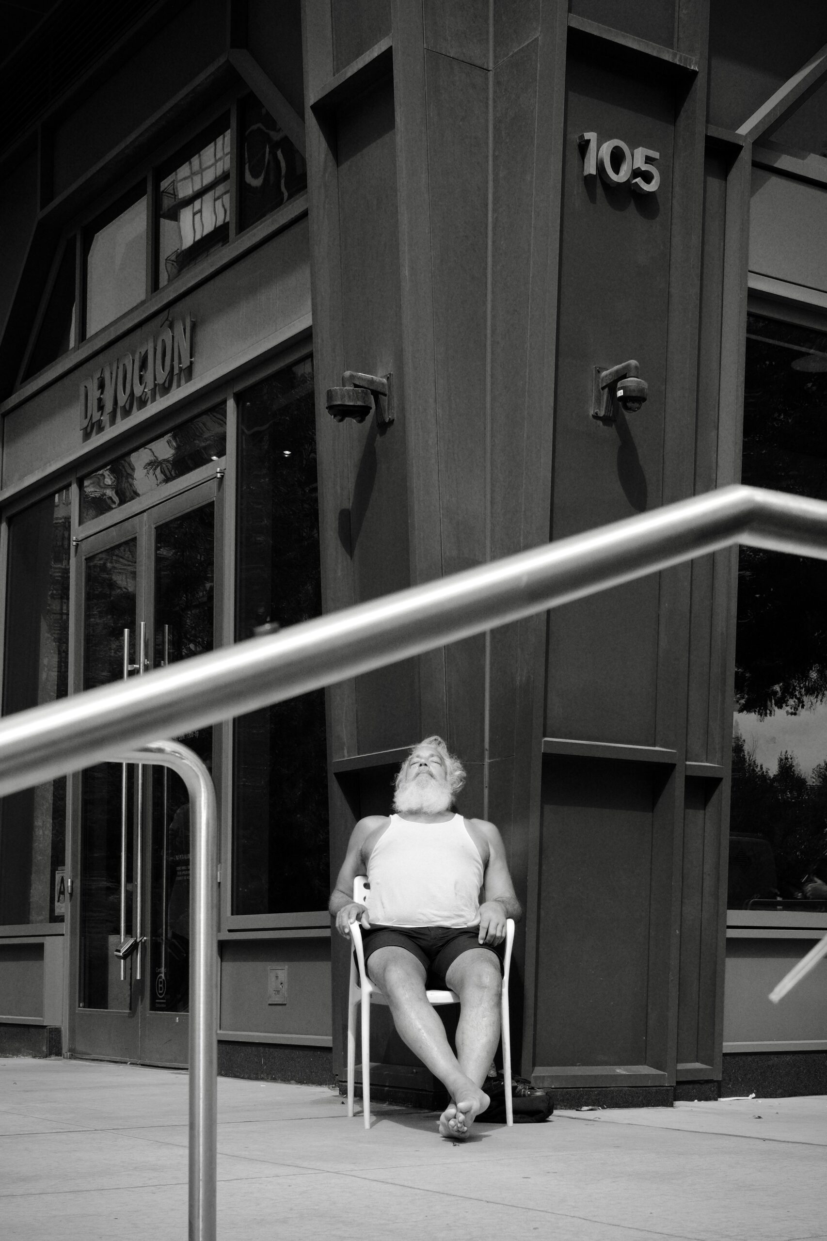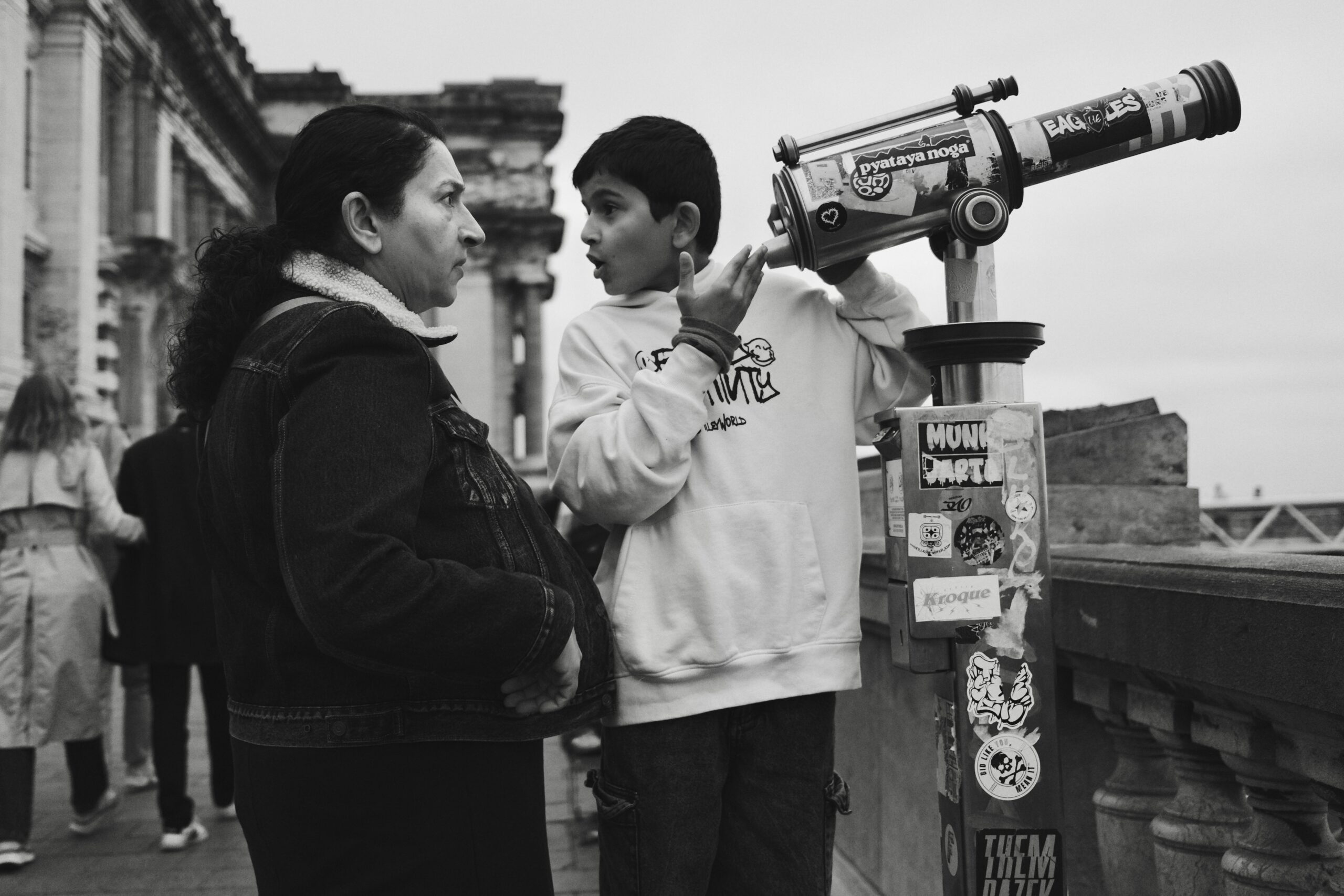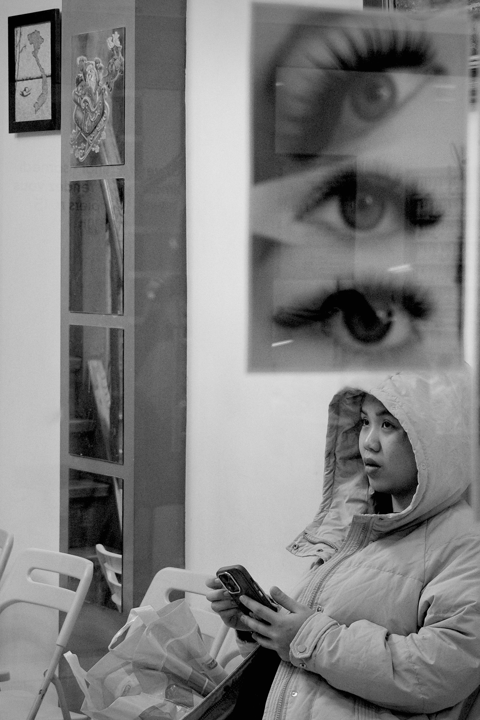 Ma pratique de la photo s’est ensuite naturellement prolongée dans la rue, où l’imprévu dicte désormais directement le sens né de l’addition d’un sujet et de son arrière-plan. Je cherche à y repérer toute association intéressante entre les personnes qui croisent mon objectif – personnes qui deviennent instantanément des personnages – et un élément du décor urbain qui les entoure. Ainsi naissent autant d’histoires visuelles interpellantes ou simplement émouvantes. Et si j’y glisse souvent une touche d’humour, de malice, voire une pointe de cynisme, c’est toujours avec bienveillance. J’aime les gens et le contact.